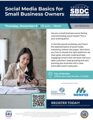 Are you a small business owner feeling overwhelmed by social media? This interactive workshop is your starting point! Join the Orange County Inland Empire SBDC Network for a fast-paced session designed to simplify social media marketing for local entrepreneurs.
