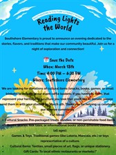 Southshore Elementary — my children’s school — will be hosting its Culture & Literacy Night, “Reading Lights the World,” on March 18 from 4:00 PM – 6:30 PM. This special event celebrates the diversity of our community by bringing students and families together through stories, traditions, and cultural exploration.